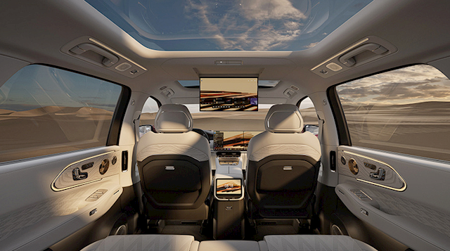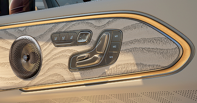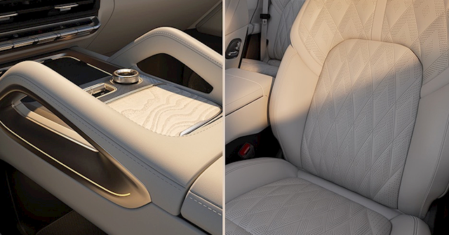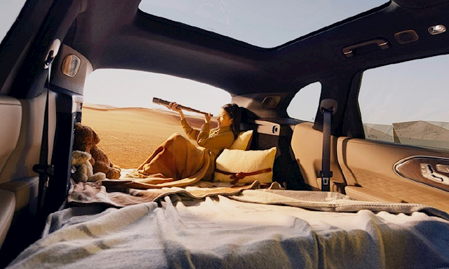 后排豪华感更浓,新车提供全景大天幕、后排娱乐屏(17英寸、3K、OLED),座椅宽大舒适,控制按键设置在门板内侧,目测支持通风、加热和按摩,并支持137°最大靠背调节、150mm前后滑动、90°腿托调节,全方位保证乘坐舒适度。