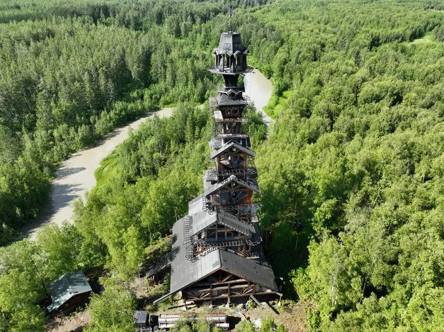 在美国阿拉斯加塔尔基特纳的一处偏僻森林里,有一座造型奇特、童话感十足的木楼,由于风格太过于超现实,当地人称之为“苏斯博士的房子”。